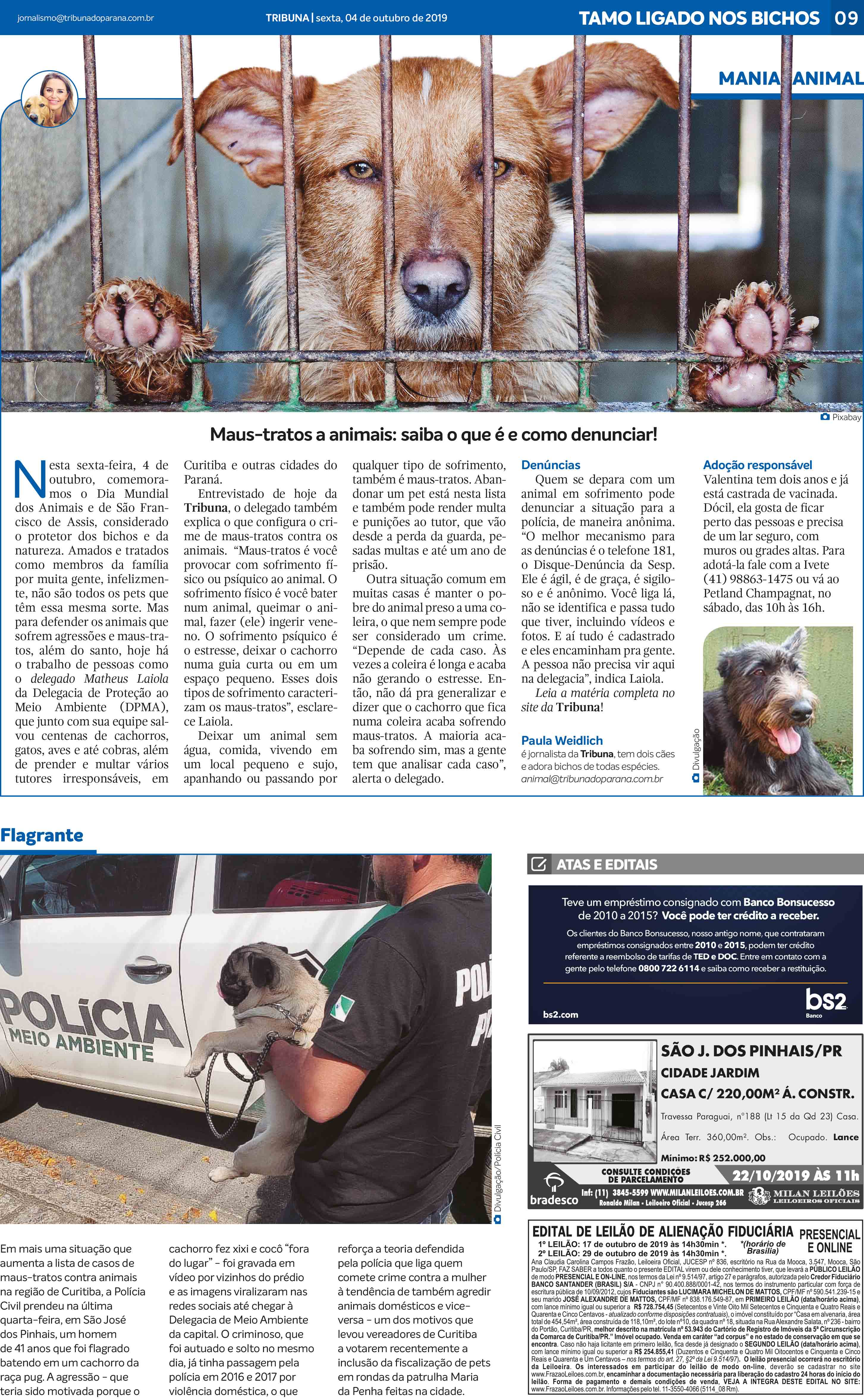 Publicidade Legal veiculada no jornal Tribuna do Paraná, em 4 de outubro de 2019, na página 09.