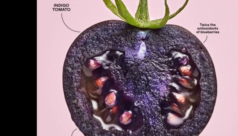Uma variedade de tomate com coloração inteiramente roxa, cujo DNA foi modificado para produzir altos teores de substâncias antioxidantes, está na reta final do processo de aprovação para uso comercial nos EUA. Os criadores da planta geneticamente modificada esperam comercializar tanto as sementes quanto os frutos, bem como outros produtos feitos à base dos tomates transgênicos.
