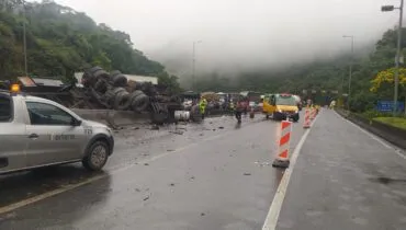 Trânsito bloqueado Motorista de caminhão morre em grave acidente na BR-376, no litoral 11/10/2025 - 14:15