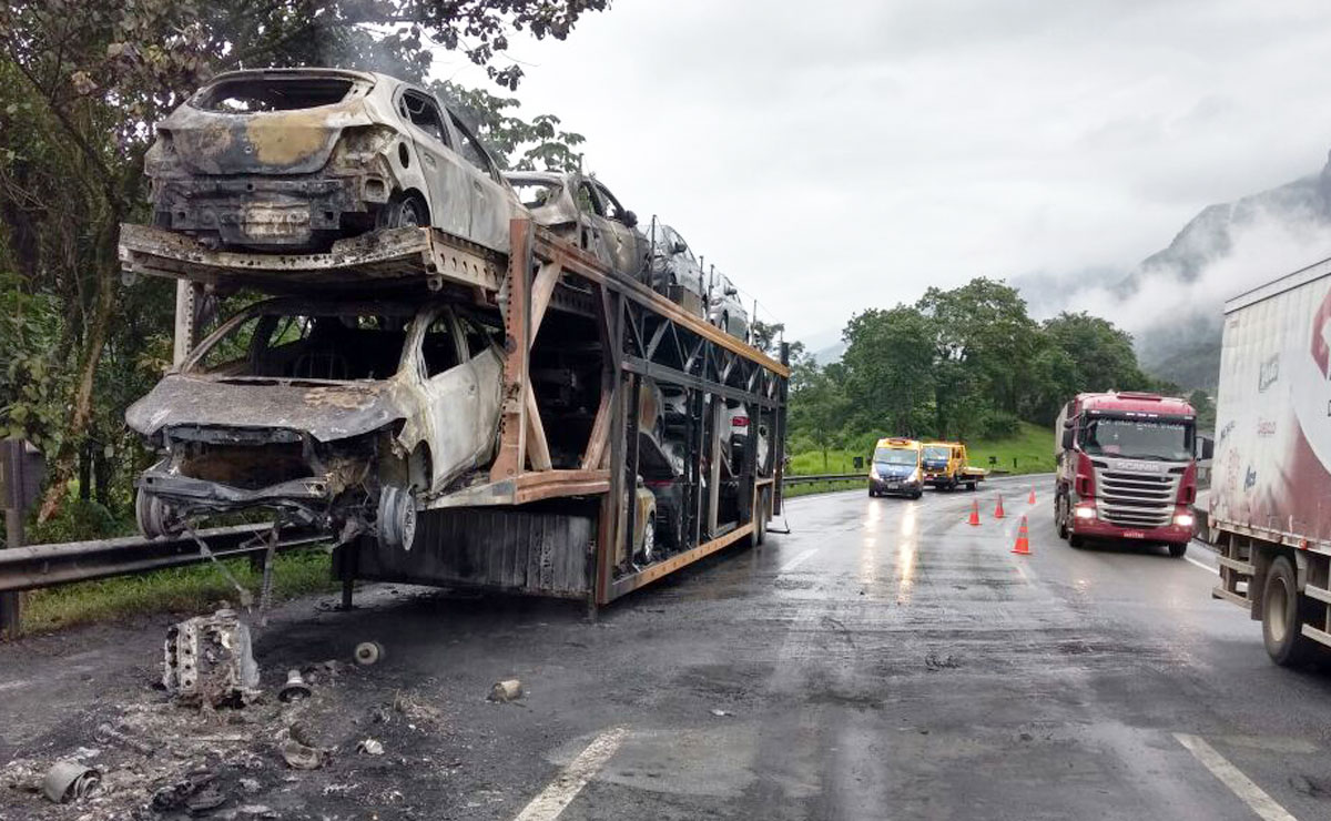 Acidente Caminhão tomba e pega fogo na BR-116, na divisa entre PR e SP. Assista o incêndio! 22/01/2019 - 15:34