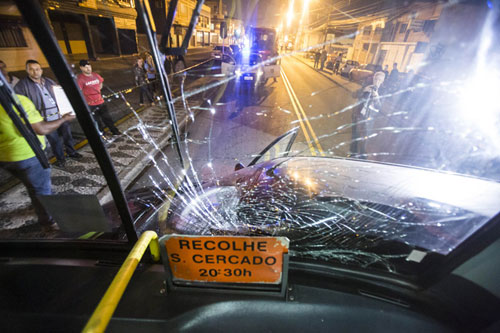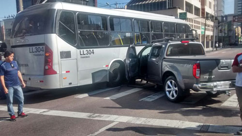 conversão irregular Mulher tem carro arrastado por vários metros após ser atingida por ônibus no centro 26/05/2015 - 06:30