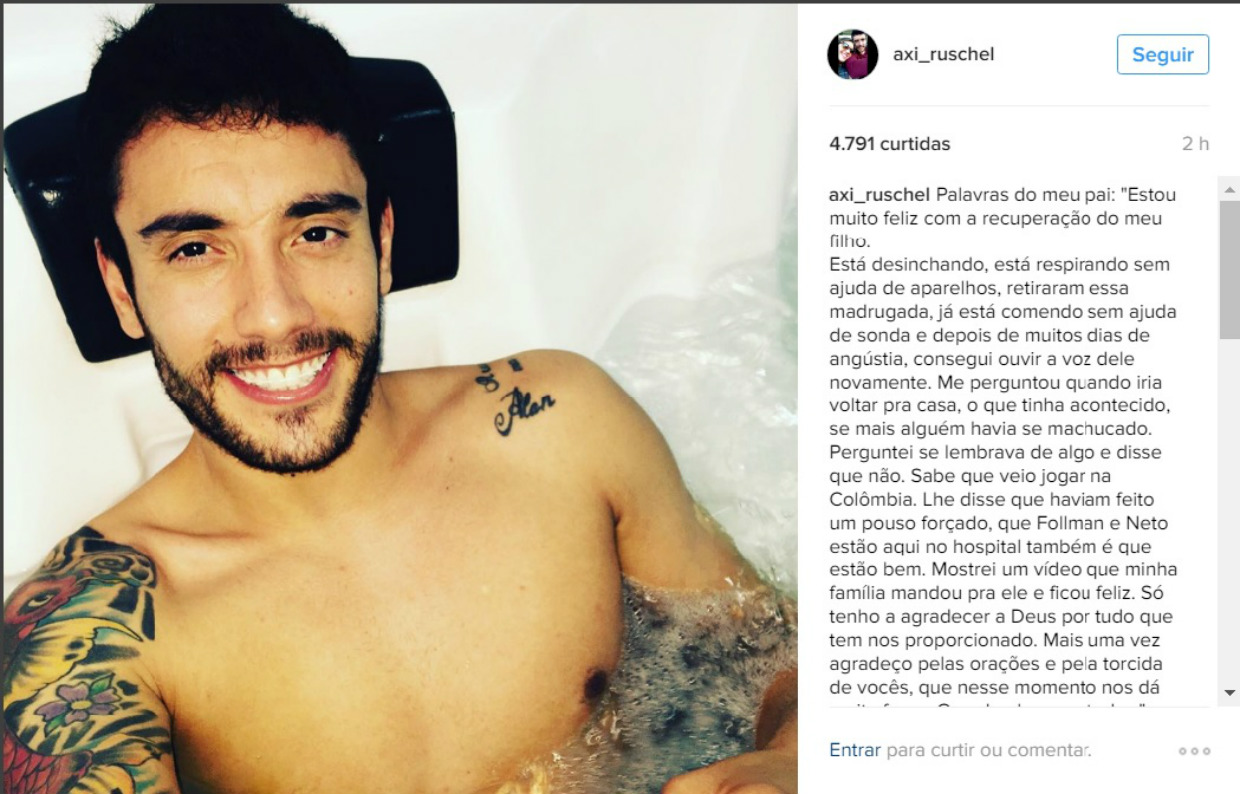 Recuperação Alan Ruschel respira sem aparelhos, mas não lembra de nada do acidente 03/12/2016 - 16:17