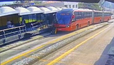 Bateu sozinho!! Cenas fortes! Biarticulado sem limites destrói plataforma de embarque em terminal de Curitiba 30/08/2023 - 13:45