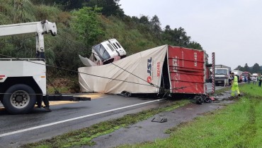 Acidente Tombamento de caminhão deixa BR-116 completamente interditada no sentido SP 20/09/2019 - 12:06