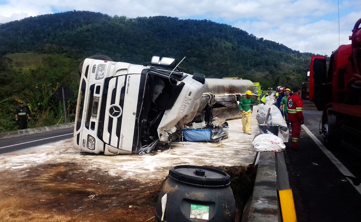 Caminhão tomba na BR-277 e pistas ficam totalmente interditadas