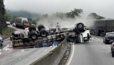 Caminho para o Litoral Caminhão tomba na BR-277, em Morretes, e provoca lentidão na rodovia 11/11/2023 - 10:07