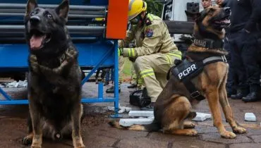 Operações emergenciais Cães da polícia fazem treinamento inédito em aeronaves no Paraná 19/03/2025 - 17:46