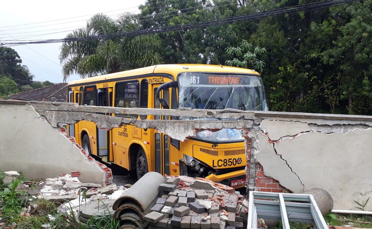 Que estrago! Ônibus destrói muro de propriedade privada em dia de chuva e pista molhada 12/06/2018 - 15:04