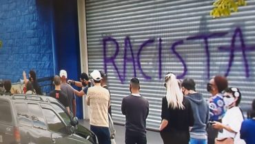 Contra o racismo Loja é pichada e carrinhos utilizados pra bloquear rua em Curitiba 21/11/2020 - 12:57
