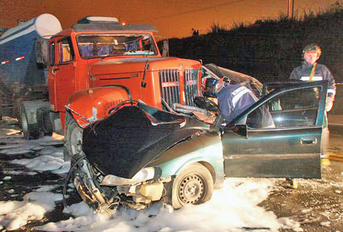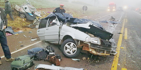 Carro foi esmagado por caminhão na PR-445