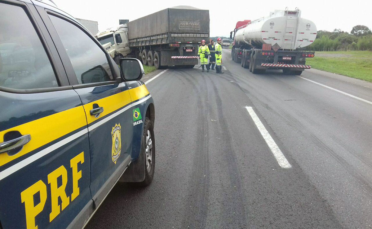 Tragédia na pista! BR-116 fica quatro horas bloqueada após grave acidente com morte. Três caminhões se envolveram 03/08/2018 - 07:59