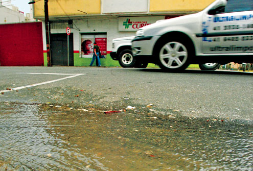 Esgoto no meio da Avenida Visconde de Guarapuava