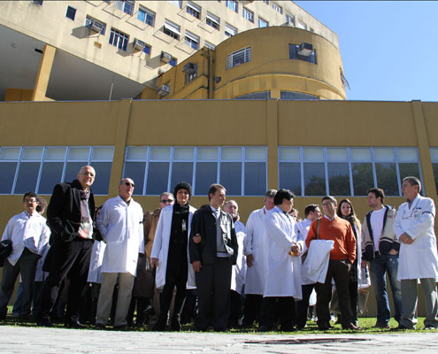 Portas fechadas Servidores do Evangélico realizam protesto contra atraso nos salários 28/06/2012 - 11:29