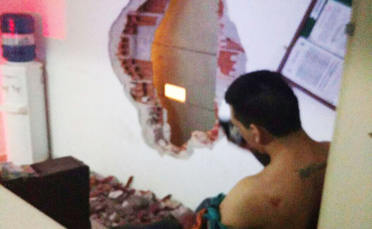 Destruição total! Bandidos usam caminhão caçamba para destruir muro de delegacia. Objetivo era o resgate de presos 12/08/2016 - 07:13