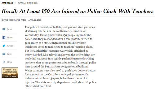 Professores seguem na luta Apesar da selvageria em confronto, professores seguem em greve e em ‘luto’ 30/04/2015 - 07:04