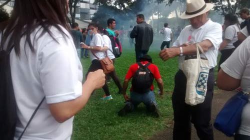 Professores sangrando Após gás de pimenta, Batalhão de Choque ocupa a frente da Alep 28/04/2015 - 12:04