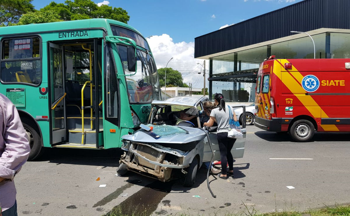 Acidente Interbairros II colide com carro e bate em poste no Pilarzinho; trânsito está bloqueado 05/11/2019 - 12:41