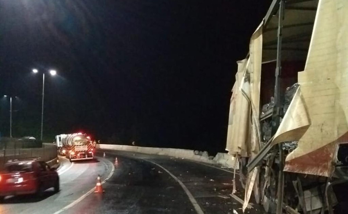 Acidente BR-376 tem bloqueio total no sentido Santa Catarina após colisão entre caminhões 23/11/2018 - 14:40