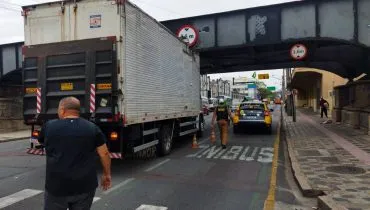 Vítima da vez! Caiu na armadilha! Caminhão com placas de Curitiba fica entalado na Ponte Preta 24/06/2024 - 11:53