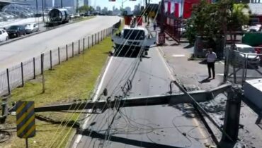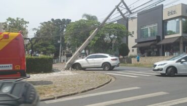 Risco de queda Acidente e poste “por um fio” complicam o trânsito em rua movimentada de Curitiba 13/11/2023 - 11:12