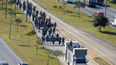 Macha por Ctba Policiais rodoviários federais marcham por Curitiba em protesto contra o governo federal 26/05/2022 - 09:59