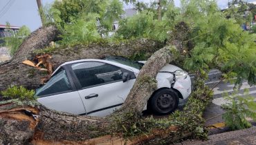 De novo! Chuva provoca queda de árvore em cima de carro, desta vez no bairro Rebouças 18/01/2022 - 16:38