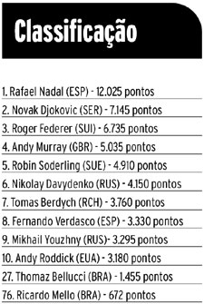 Rafael Nadal na liderança do ranking da ATP