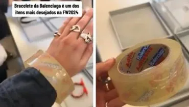 Vai custar uma fortuna! Bracelete da grife de luxo Balenciaga que imita fita adesiva vira piada nas redes sociais 20/03/2024 - 11:57