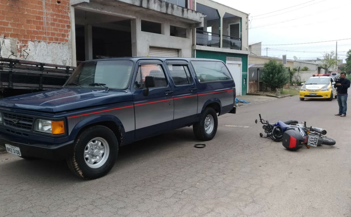 Que susto! Após queda, motociclista e garupa ficam no chão e caminhonete acaba passando por cima 04/11/2018 - 11:32