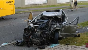 Que pancada! Acidente gravíssimo entre carro e ônibus deixa sete feridos em Curitiba 30/08/2019 - 07:26