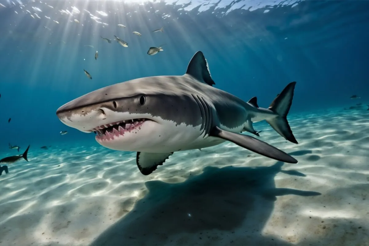 Presente em oceanos temperados de todo o mundo, o tubarão-branco é um dos maiores predadores marinhos, podendo ultrapassar 6 metros de comprimento. Alimenta-se de peixes, focas e outros mamíferos marinhos. Ataques a humanos são raros e geralmente resultam de confusão com presas naturais. No entanto, devido ao seu tamanho e força, esses encontros podem ser fatais.
