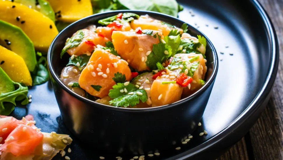 1. Ceviche de salmão com manga e abacate