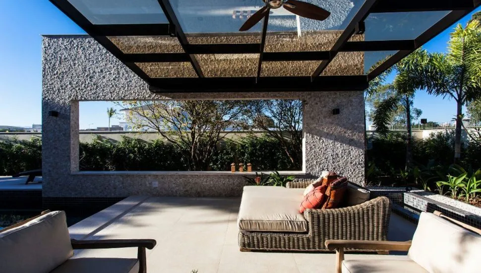Patricia Penna ainda acrescenta ser possível o uso de uma cobertura retrátil – automatizada – que se fecha ou se abre conforme o desejo dos moradores. “Esse mecanismo oferece uma expansão para o uso dos solários e gazebos, pois, a depender do sistema, até a intensidade da vedação da luz solar pode ser controlada”, destaca.