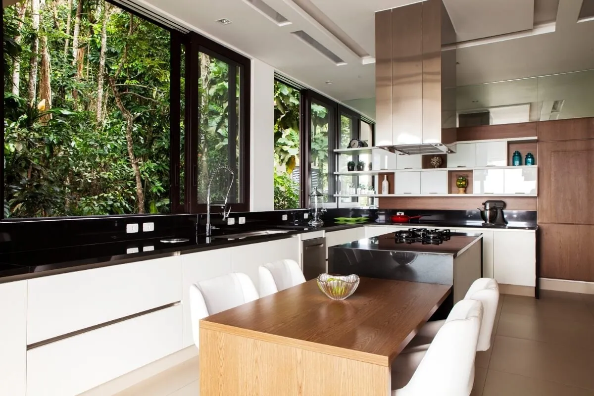 Em um ambiente onde convivemos com questões perigosas como o calor e o manuseio de objetos cortantes e pontiagudos, a iluminação cumpre um papel de suma importância. A profissional diz que, ao definir o par de paredes que serão o apoio para a bancada, deve-se considerar a existência de uma janela.