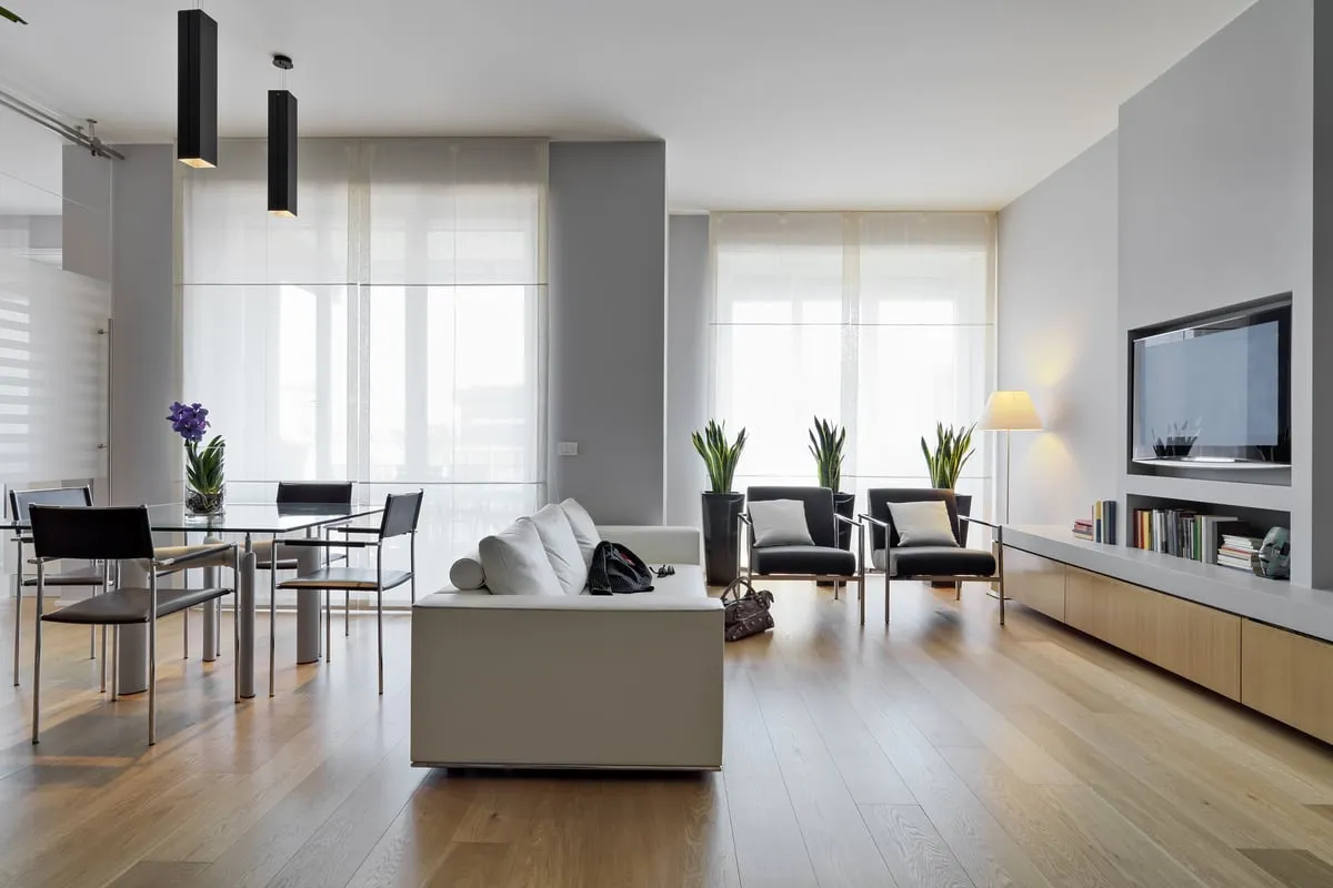Além das cores neutras, Larissa Santo explica que na sala de estar não deve haver elementos que atrapalhem a circulação. “Deixe espaço para circular; não coloque sofá, poltrona, pufe e rack muito grandes”, recomenda. Além disso, para trazer a decoração contemporânea para esse ambiente, o arquiteto e urbanista Francesco Torrisi, sócio-diretor da Átomo Arquitetura, recomenda utilizar acessórios e tapetes com texturas tonais, sem estampas e excessos.
