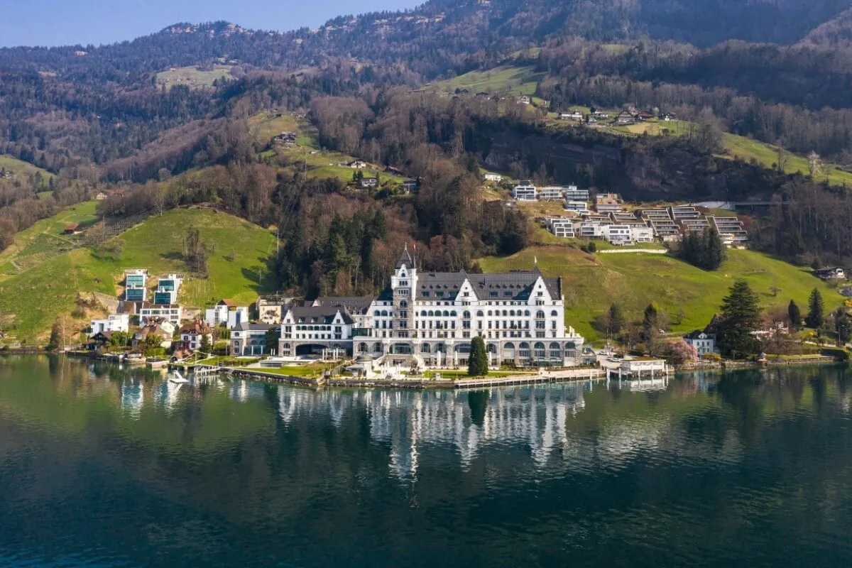 O hotel fica às margens do lago Lucerna e aos pés da famosa montanha Rigi, a cerca de uma hora de barco da cidade de Lucerna. O serviço é impecável e oferece vários mimos aos hóspedes. Os quartos são modernos, espaçosos e confortáveis. O restaurante Prisma tem uma estrela Michelin. Mas o melhor de tudo é a piscina aquecida de borda infinita sobre as águas do lago.