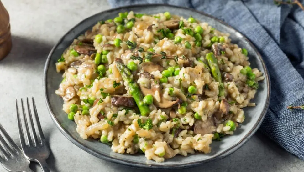 Risoto de aspargo com cogumelo