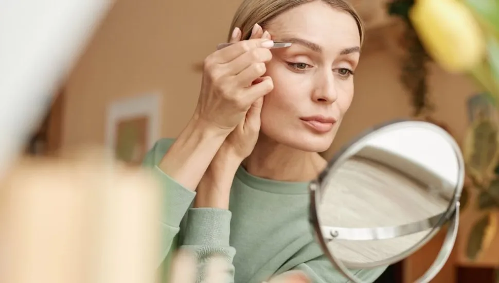 Para cuidar das sobrancelhas com segurança e precisão, é essencial contar com ferramentas como uma tesoura de ponta fina própria para cortes precisos e um espelho de aumento, que amplia a visão e, de preferência, que tenha ventosas para manter as mãos livres e facilitar o trabalho. Para remover os fios, a escolha da pinça faz toda a diferença. “Gosto das pinças da Klass Vough, em especial da Profissional de Ponta Chanfrada Dourada, que é ótima para alcançar fios curtos e garantir um acabamento limpo”, explica Lilian Vicentin.