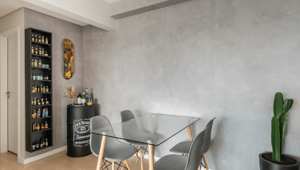 Quando o morador é colecionador, transformar essa paixão em parte da decoração é um gesto de autenticidade. Miniaturas, souvenirs de viagens ou garrafas especiais ganham destaque quando dispostos de maneira estratégica, seja em uma estante lateral, em nichos planejados ou em uma parede dedicada. Essas pequenas curadorias trazem vitalidade aos ambientes e despertam a curiosidade de quem visita, sem comprometer a harmonia visual.