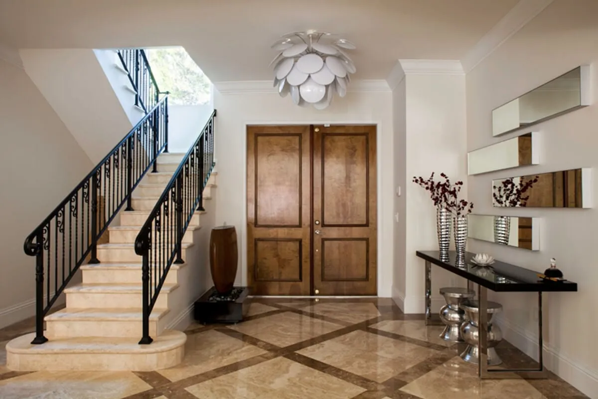 Compreender o estilo da casa e a sua arquitetura é o primeiro passo, e a designer ressalta a importância de prestar atenção aos componentes que integram o décor. “Em um estilo mais clássico, podemos trabalhar com portas adornadas com desenhos”, exemplifica. Ela cita também os projetos de casas de campo, que costumam seguir pelo viés de uma arquitetura mais rústica. “Nesse caso, gosto de constituir uma porta de madeira com os veios e nós aparentes”, detalha.