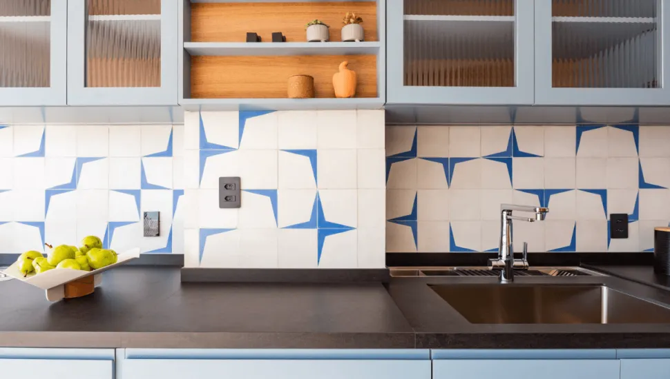 O setor que compreende a parede entre a bancada e os armários, comumente conhecido como backsplash, já é um clássico quando o assunto é um revestimento estilizado. Seja no azulejo, no formato 20 x 20 cm, ou em outras versões, a profissional ressalta o protagonismo de uma cor monocromática ou a associação de tons por meio de desenhos criativos. “É muito interessante elaborar a montagem, que acontece tal qual um quebra-cabeças”, analisa Mari Milani.