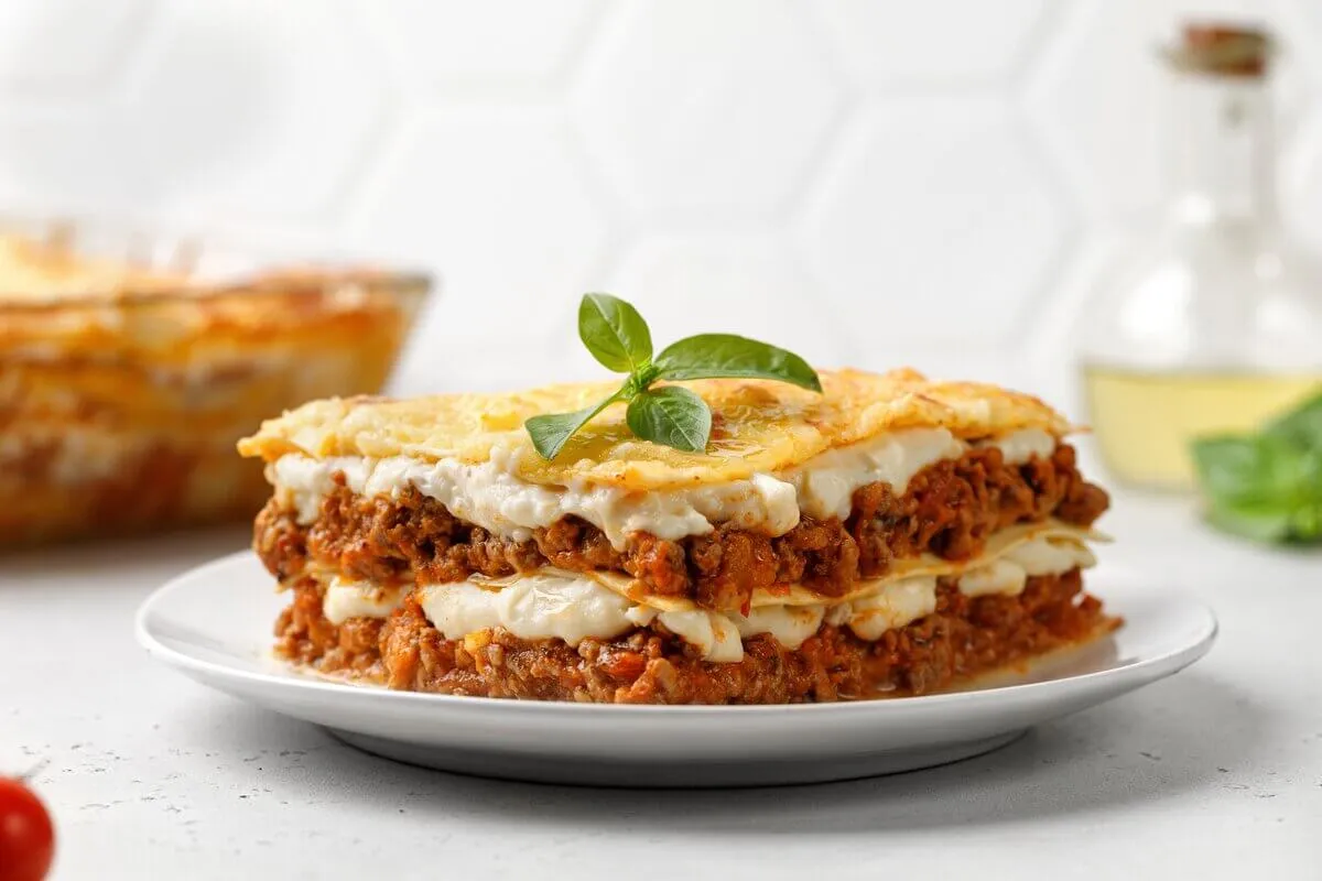 Lasanha à bolonhesa com molho branco