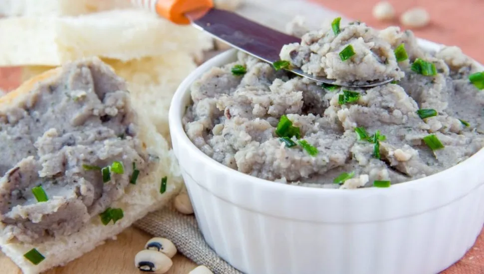 No liquidificador, coloque o feijão-de-corda, o alho, o suco de limão e o azeite de oliva. Bata até obter uma mistura cremosa e homogênea. Adicione o cheiro-verde, o sal e a pimenta-do-reino. Bata novamente para incorporar. Sirva em seguida.