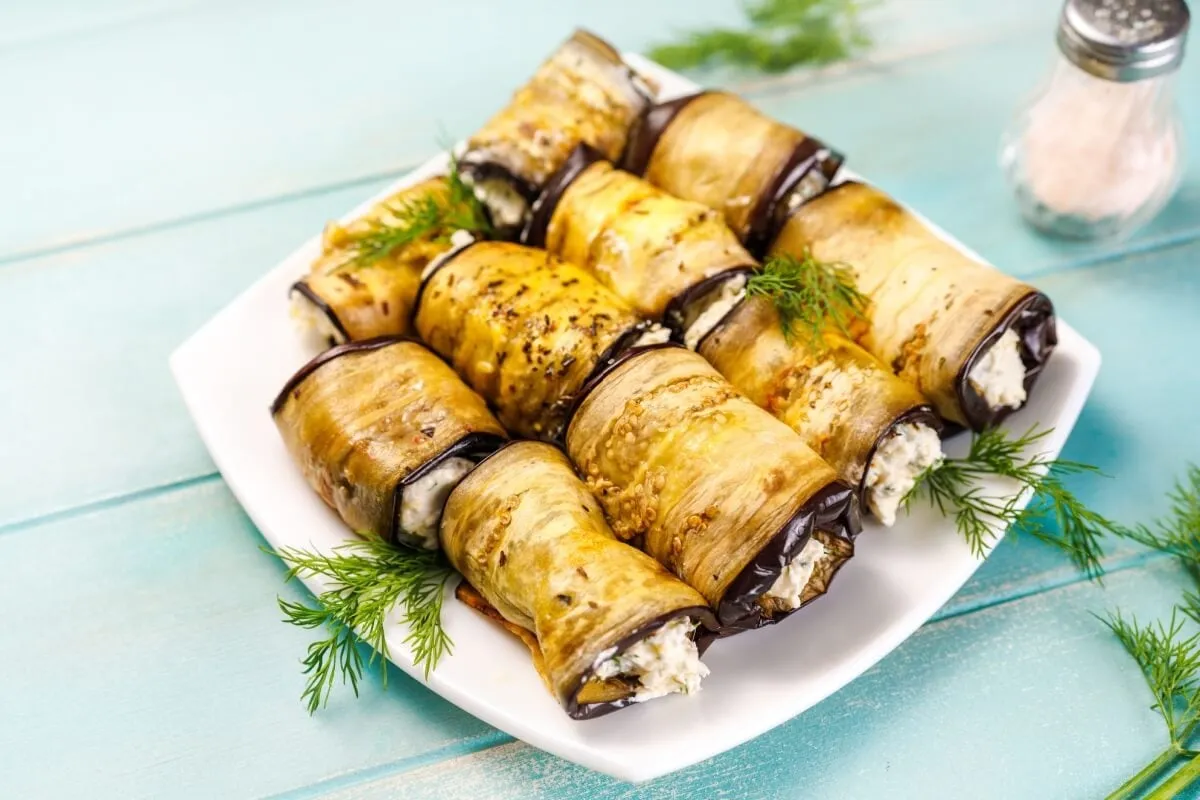 Rolinhos de berinjela recheados com tofu