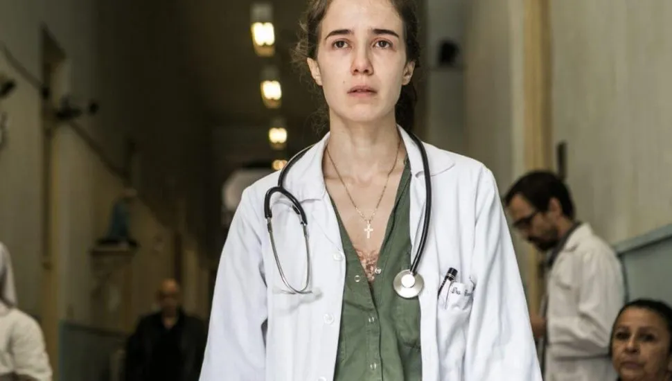 Marjorie Estiano e Julio Andrade vestidos de médicos na série "Sob Pressão)