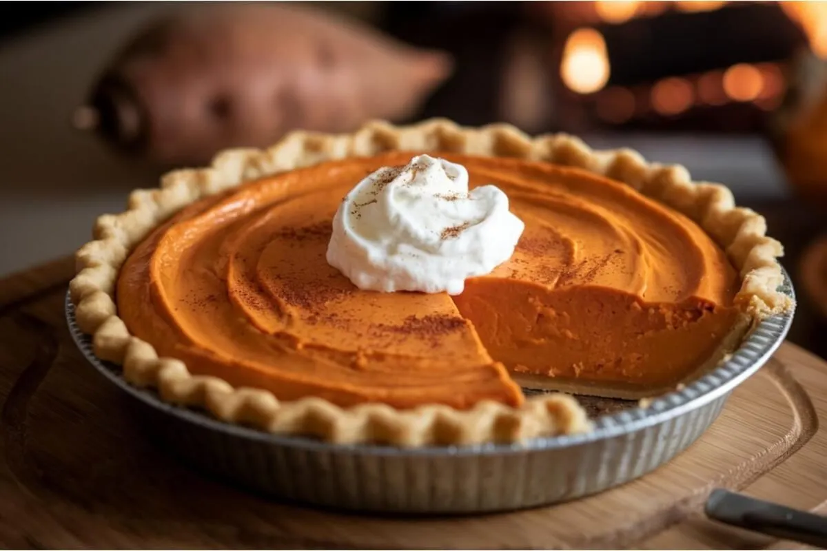 Em seguida, em uma tigela grande, misture o purê de batata-doce, o açúcar mascavo, o leite, os ovos, o melado, a canela, a noz-moscada, o gengibre e o sal. Bata bem até obter uma mistura homogênea. Despeje o recheio sobre a massa preparada.