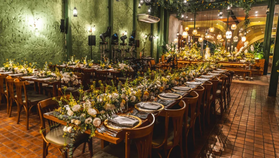 A especialista Aline Garcez também recomenda apostar em lugares marcados e fazer convites digitais, para ter uma identidade visual coesa, desde o convite até a disposição dos assentos. E a atenção aos detalhes se dá inclusive com peças de uso funcional. Por exemplo, uma mesa de carregamento de celular por indução com design mais elegante vai servir para deixar o ambiente mais sofisticado.