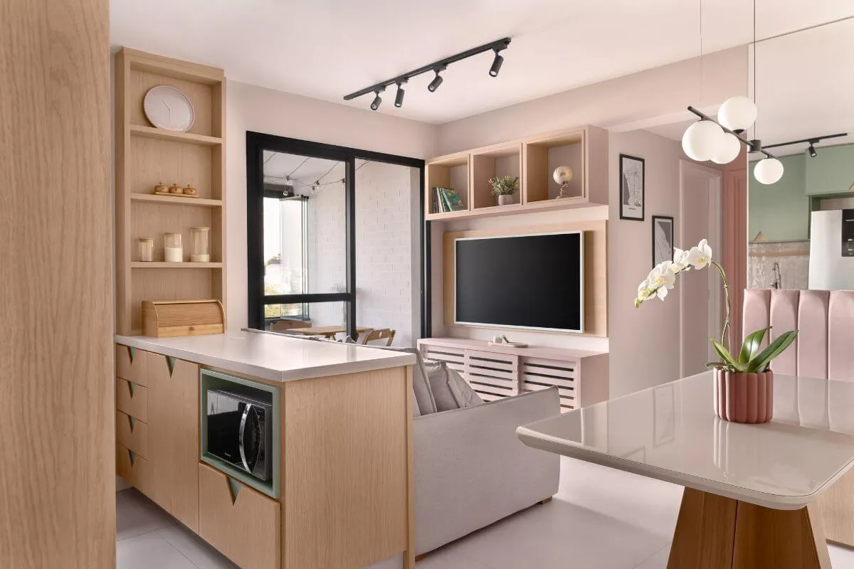 - Integração de ambientes: unir sala, cozinha e varanda cria layouts mais fluidos e amplia visualmente o espaço;