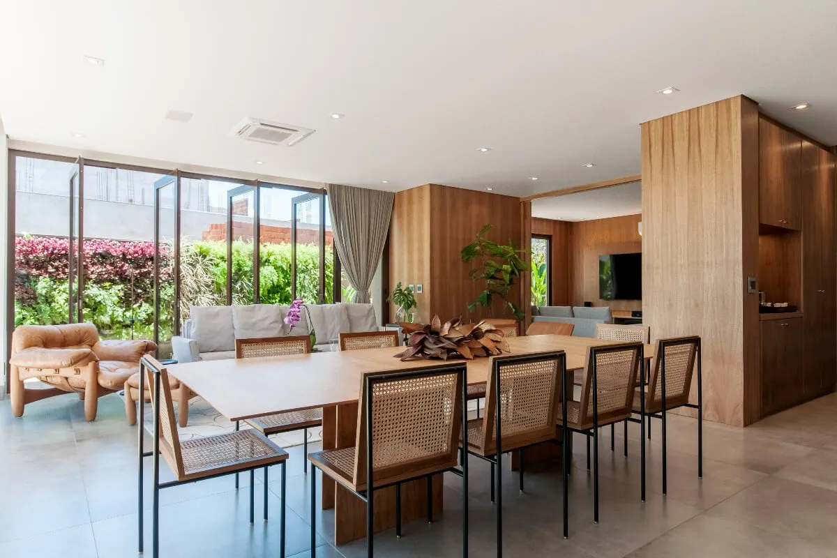 Além de escolher o material alinhado com os direcionamentos do projeto, a conservação dos tampos é assegurada por meio do uso de bases de panelas e copos para proteger as superfícies contra o calor e umidade, além de jogos americanos que evitam atritos ou arranhões. “E sempre se deve seguir as instruções recomendadas pelo fabricante”, finaliza a dupla do escritório.