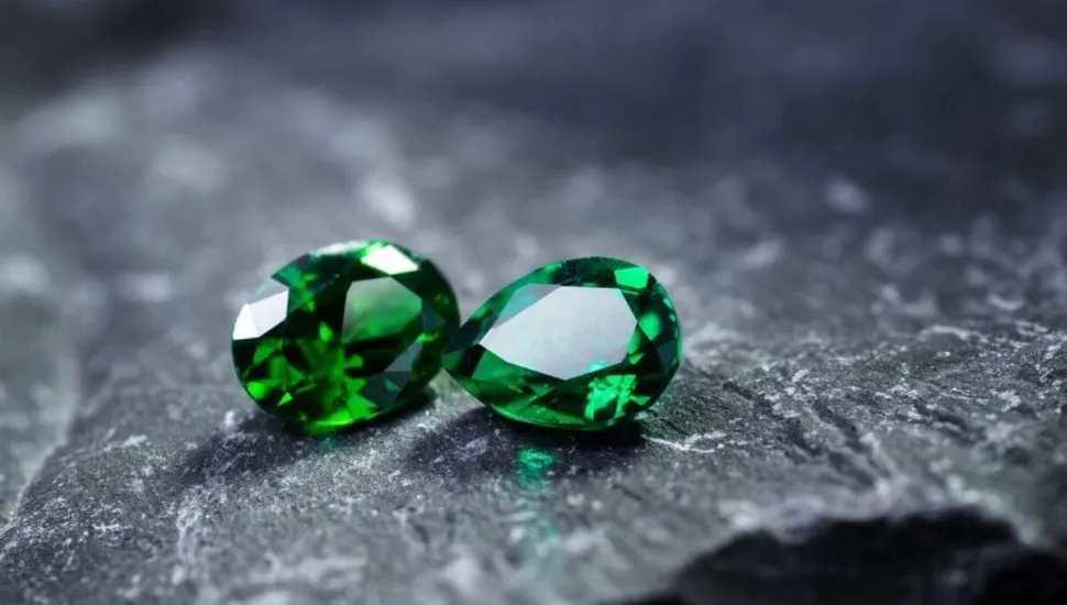 Pedras de esmeralda em um fundo cinza